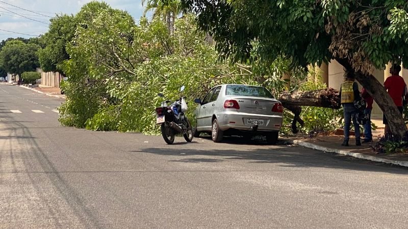 Na manhã desta quinta‑feira (11), por volta das 11h, uma árvore não frutífera caiu sobre um Fiat Siena prata, com placas de Luzinópolis, estacionado na Rua XV de Novembro, em Tocantinópolis.