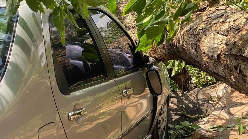 O desabamento atingiu a parte frontal do veículo, ocasionando amassamento no para‑lamas e no capô, além da quebra do para‑brisa. Felizmente, ninguém se feriu. O motorista e os passageiros que eram de outra cidade estavam em um escritório próximo quando ouviram o barulho da queda da árvore.