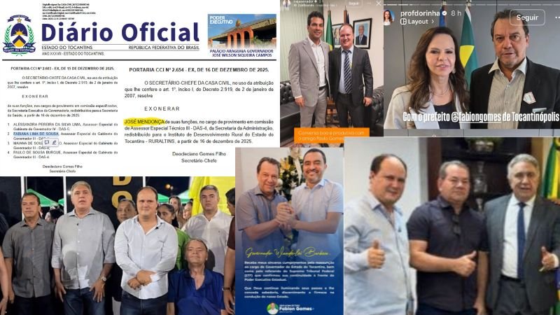Fabiana exercia a função de assessora especial no gabinete do Governador, nomeada pelo ato nº 2.585 ML, assinado pelo então governador em exercício, Laurez Moreira, durante o afastamento de Wanderlei Barbosa. Já José Mendonça, ex-candidato a prefeito de Augustinópolis e um dos principais nomes do grupo político de Paulo Gomes, havia sido nomeado pelo ato nº 388 ML, publicado no Diário Oficial nº 6.911, em 2 de outubro de 2025.