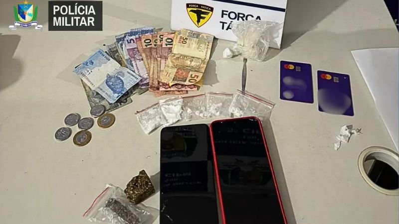 Na madrugada de domingo (22), a Equipe de Força Tática da 5ª CIPM realizou apreensão de drogas, dinheiro e material usado para embalar entorpecentes na zona rural de Tocantinópolis. A ação ocorreu após chamado via COPOM que informou possível disparo de arma de fogo na região.